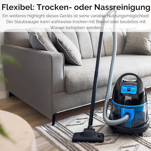 Der Zilan Wasser Staubsauger mit Wasserfilter ist die ideale Lösung für eine gründliche und allergenfreie Reinigung. Mit einer starken Saugleistung von 2.000 Watt entfernt er nicht nur Staub, sondern auch Allergene wie Milben und Pollen zuverlässig im Wasserfilter, sodass du unbeschwert aufatmen kannst.